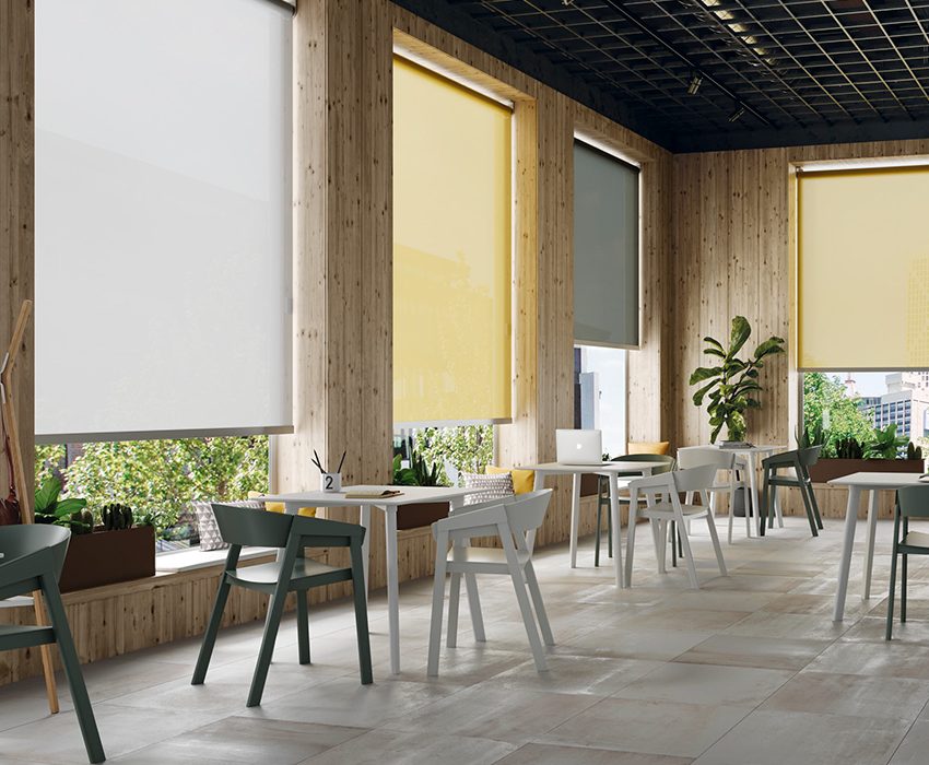 Estor enrollable a motor de batería de medidas 200x200cm.